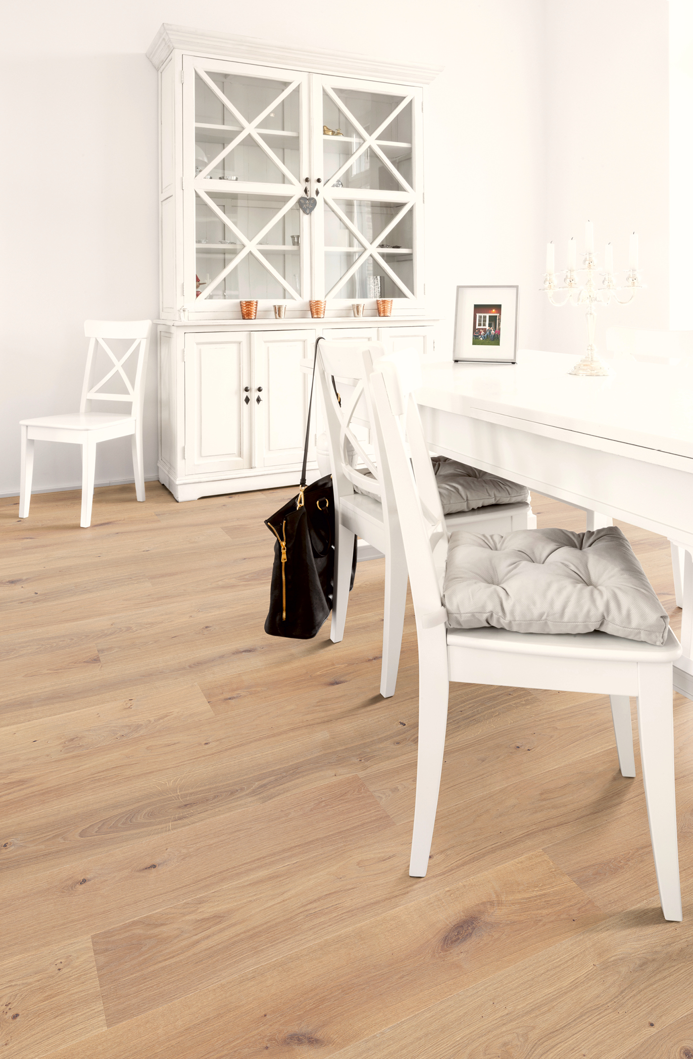 Ek XXL Spader har en livlig struktur och färg med små kvistar och andra växtvariationer med en vitlaserad borstad och mattlackad yta. Golvet har Berg & Bergs egna klicksystem Svedloc Plus. Denna fog låser samman brädorna och när de väl är låsta förblir de sammansatta. Vid flytande installation rekommenderas det att använda lim i noten vilket gör förbindningen extremt stark. Delade brädor förekommer i paketen upp till 1/3 av golvytan. I ett delat lager är det 800, 1200 eller 1600 mm brädor. Trappnosar finns som tillval. Golvet är FSC®-certifierat (C030473) och tillverkat med råvaror från ansvarsfullt skogsbruk.