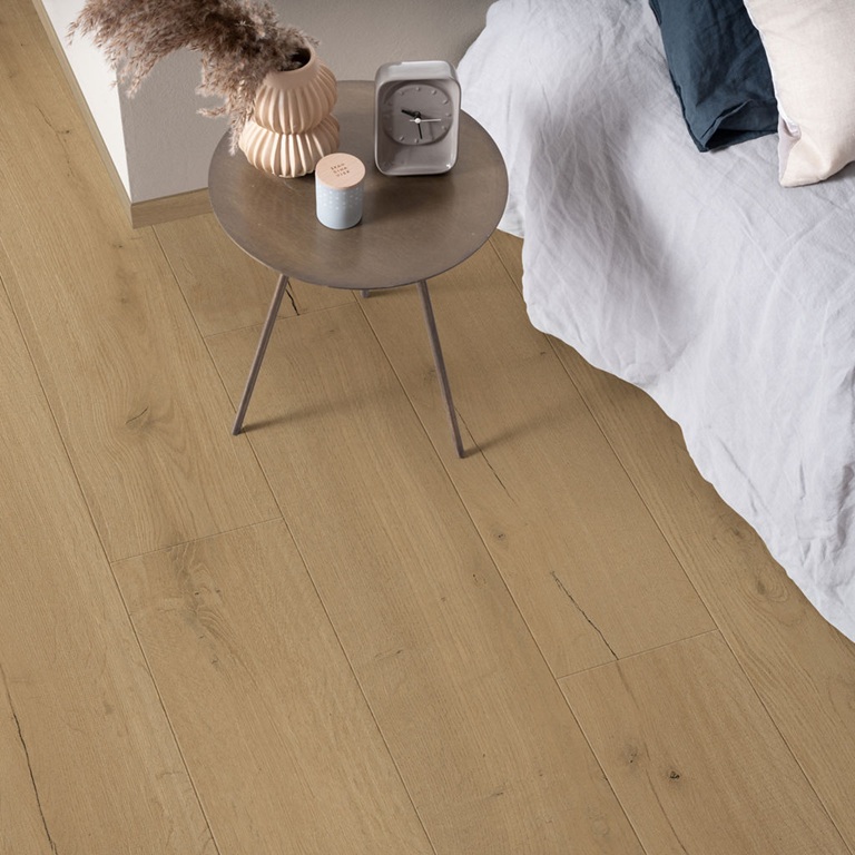 Driftwood Brown Oak är ett laminatgolv i en ekdesign som kombinerar den lätt rustika, väderbitna charmen hos drivved med en sofistikerad finish. De varma, medelbruna tonerna, ger ett modernt men ändå tidlöst uttryck. Golvet har distinkta träådringar och kvistar, men ger ändå ett lugnt intryck i alla rum. Visby är ett Sensation-golv, vilket innebär att det har extra autentisk struktur och en sofistikerad matt yta. Det patenterade skyddslagret TitanX™ ger golvet hög motståndskraft mot repor och slitage och tack vare AquaSafe-tekniken är golvet vattentätt och bekymmersfritt. Visby är snabbt och enkelt att installera med PerfectFold™ klicksystem.