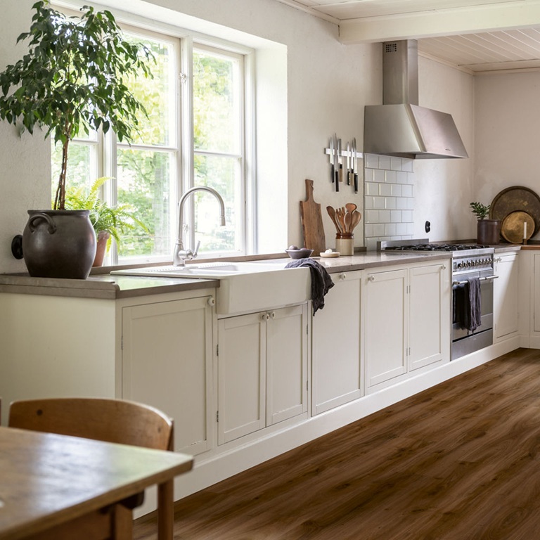 Brown Heritage Oak är en klassisk, majestätisk ekdesign i en djup mörkbrun ton som tillför både värme och elegans till alla typer av rum. De diskreta kvistarna, träådringarna och den taktila strukturen ger vinylgolvet ett mycket naturtroget utseende och känsla. Namsens klassiska plankstorlek skapar en modern känsla och passar i rum av alla storlekar. Golvet är mjukt och tyst att gå på men är samtidigt tåligt mot slitage, slag och repor tack vare en stark kärna och ett extra skyddande ytskikt. Namsen är vattentätt och fläcktåligt, vilket gör det lätt att städa och ett utmärkt val även för kök eller hall. Namsen Pad Pro är enkelt och snabbt att installera tack vare Uniclic® klicksystem och det integrerade mellanlägget. Det är perfekt för renoveringar, eftersom det kan läggas även på något ojämna ytor, som klinkergolv.