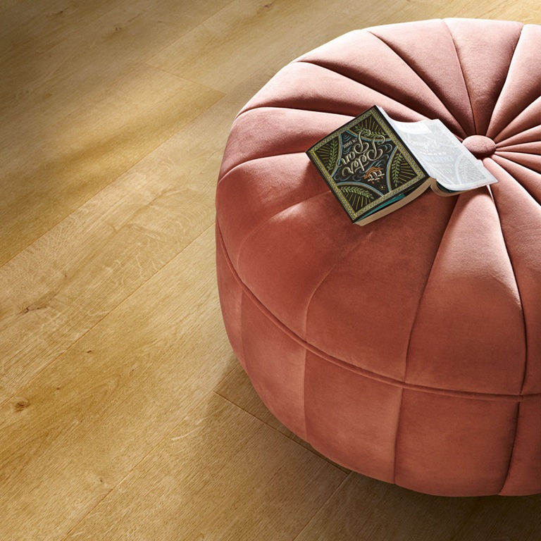 Golden Ardeche Oak är en charmig och karaktärsfull ekdesign i en gyllene mellanbrun ton som tillför både värme och personlighet till alla typer av rum. De små kvistarna, sprickorna och den taktila strukturen ger vinylgolvet ett mycket naturtroget utseende och känsla. Namsens klassiska plankstorlek skapar en modern känsla och passar i rum av alla storlekar. Golvet är mjukt och tyst att gå på men är samtidigt tåligt mot slitage, slag och repor tack vare en stark kärna och ett extra skyddande ytskikt. Namsen är vattentätt och fläcktåligt, vilket gör det lätt att städa och ett utmärkt val även för kök eller hall. Namsen Pad Pro är enkelt och snabbt att installera tack vare Uniclic® klicksystem och det integrerade mellanlägget. Det är perfekt för renoveringar, eftersom det kan läggas även på något ojämna ytor, som klinkergolv.