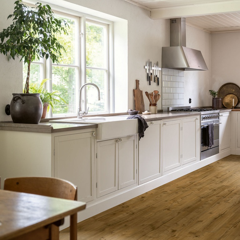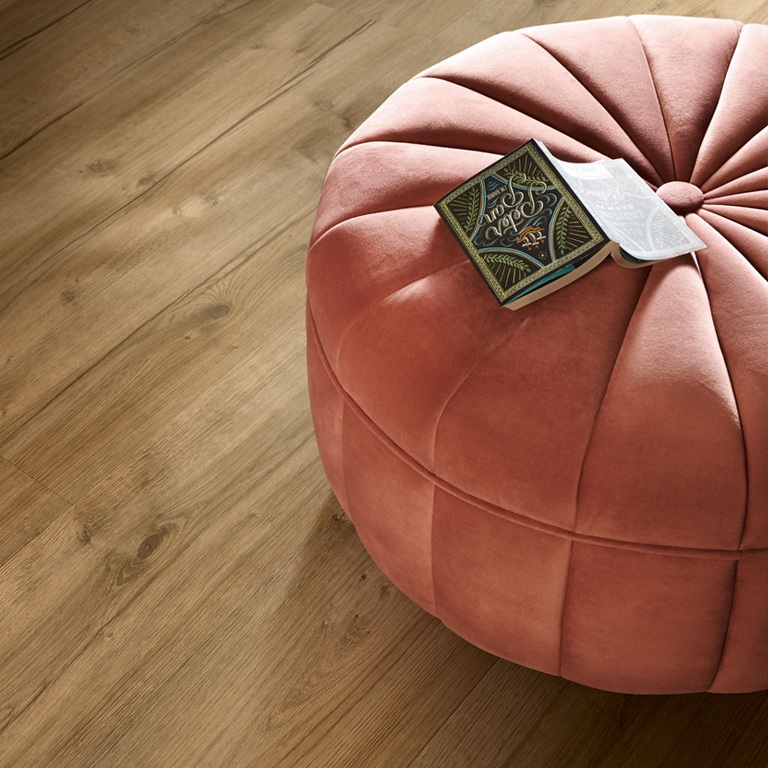 Natural Cabin Oak är en rustik och karaktärsfull ekdesign i djupa mellan- till mörkbruna toner som tillför både värme och personlighet till alla typer av rum. De markerade kvistarna, sprickorna och den taktila strukturen ger vinylgolvet ett levande och naturtroget utseende och känsla, och för in naturens skönhet i ditt hem. Namsens klassiska plankstorlek skapar en modern känsla och passar i rum av alla storlekar. Golvet är mjukt och tyst att gå på men är samtidigt tåligt mot slitage, slag och repor tack vare en stark kärna och ett extra skyddande ytskikt. Namsen är vattentätt och fläcktåligt, vilket gör det lätt att städa och ett utmärkt val även för kök eller hall. Namsen Pad Pro är enkelt och snabbt att installera tack vare Uniclic® klicksystem och det integrerade mellanlägget. Det är perfekt för renoveringar, eftersom det kan läggas även på något ojämna ytor, som klinkergolv.