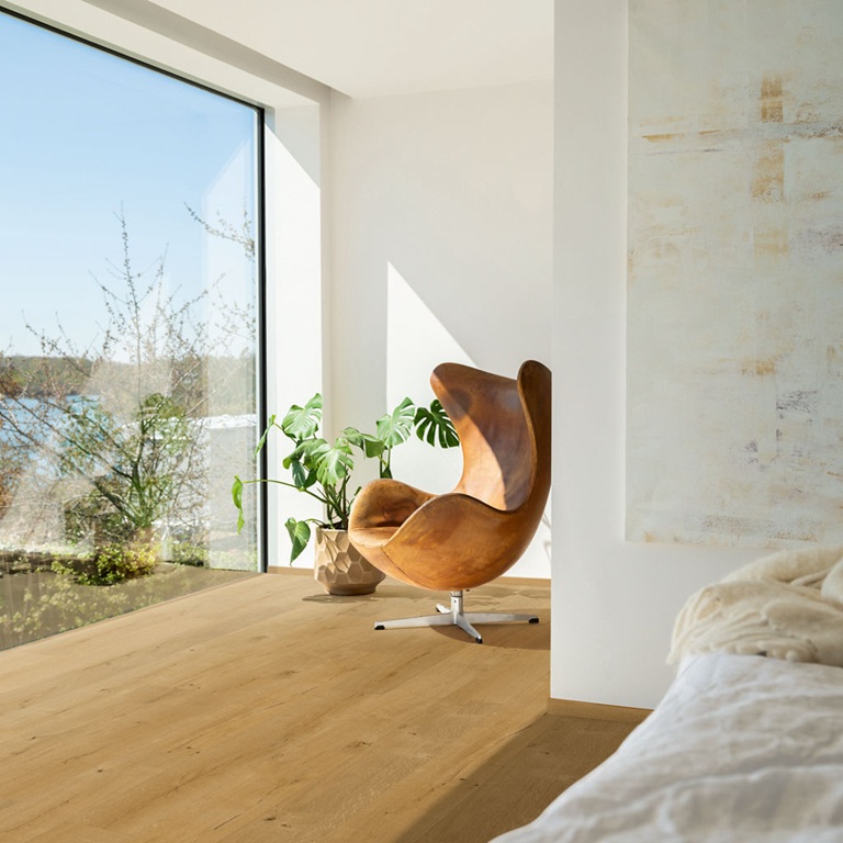 Natural Forest Oak är en elegant ekdesign i en mellanbrun ton som tillför värme till alla typer av rum. De diskreta kvistarna, de linjära träådringarna och den taktila strukturen ger vinylgolvet ett mycket naturtroget utseende och känsla. Namsens klassiska plankstorlek skapar en modern känsla och passar i rum av alla storlekar. Golvet är mjukt och tyst att gå på men är samtidigt tåligt mot slitage, slag och repor tack vare en stark kärna och ett extra skyddande ytskikt. Namsen är vattentätt och fläcktåligt, vilket gör det lätt att städa och ett utmärkt val även för kök eller hall. Namsen Pad Pro är enkelt och snabbt att installera tack vare Uniclic® klicksystem och det integrerade mellanlägget. Det är perfekt för renoveringar, eftersom det kan läggas även på något ojämna ytor, som klinkergolv.