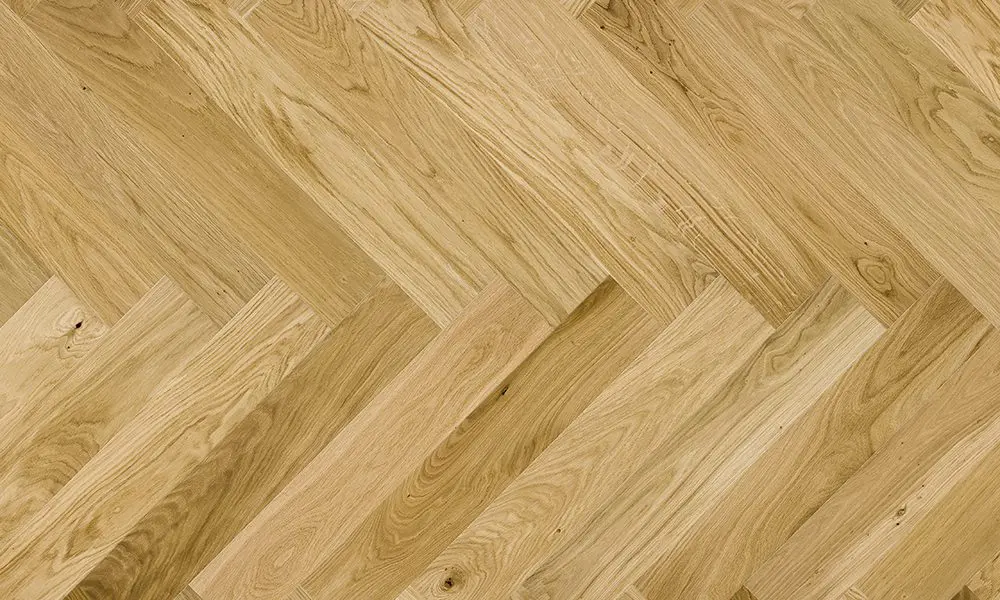 Klassisk och stilren fiskbensparkett i ek. Stavarna är borstade så årsbetäckningarna framträder helt naturligt. Har fas på alla 4 kanter vilket förstärker intrycket av ett ädelt och traditionellt ekträgolv. Skall monteras flytande.