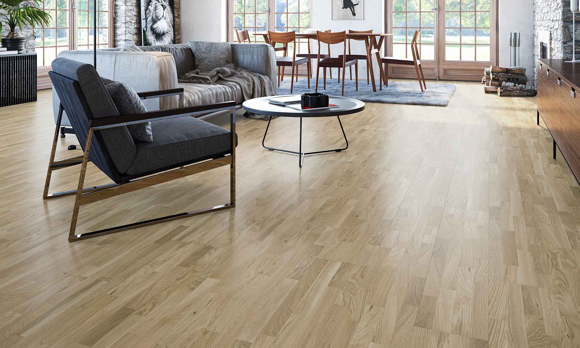 Designparkett i standardsortering vars naturliga stavar och trästruktur ger ett unikt utseende. Det gyllenbruna färgspelet har ett karaktärsfullt uttryck. 5G-klicksystem för snabb installation. Läggs flytande utan användning av lim.
