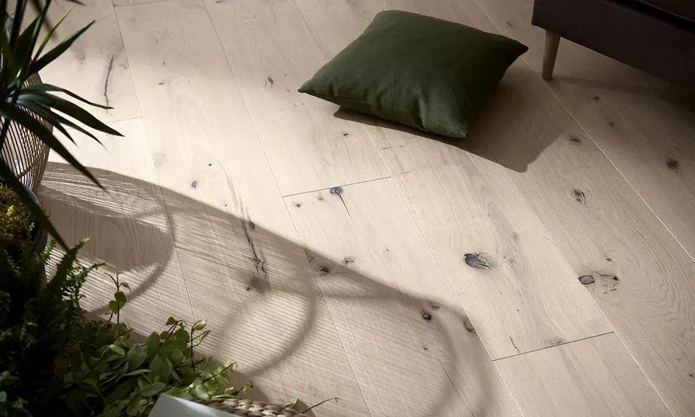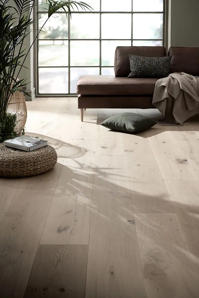 De långa, breda herrgårdsplankorna ger ett helt unikt och naturligt utseende. De olika sorteringarna framhäver träets naturliga detaljer. Ytan är borstad, vilket markerar träets ådring och ger en stark, hållbar yta. Har fas på alla 4 sidor. Drop Down klicksystem för enkel installation. Läggs utan behov av lim.